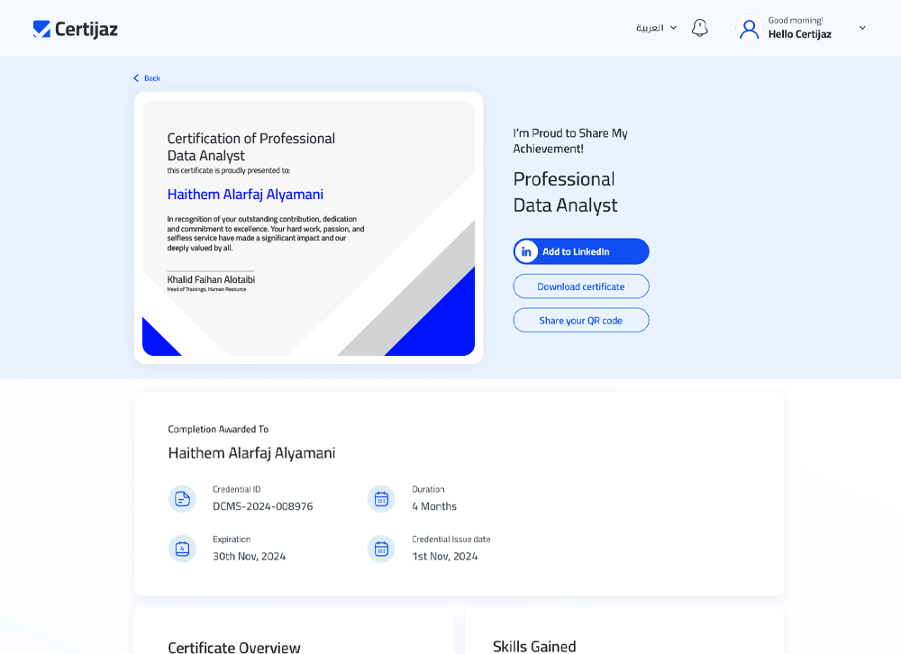 The GCC’s first Arabic-native SaaS to issue, verify, and protect your academic and professional credentials — Arabic-native, KSA-hosted. No fraud. No delays. 100% compliance.